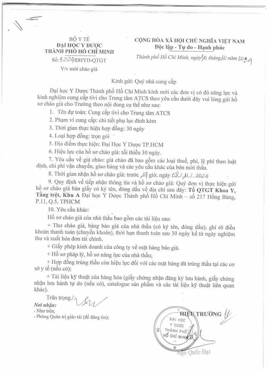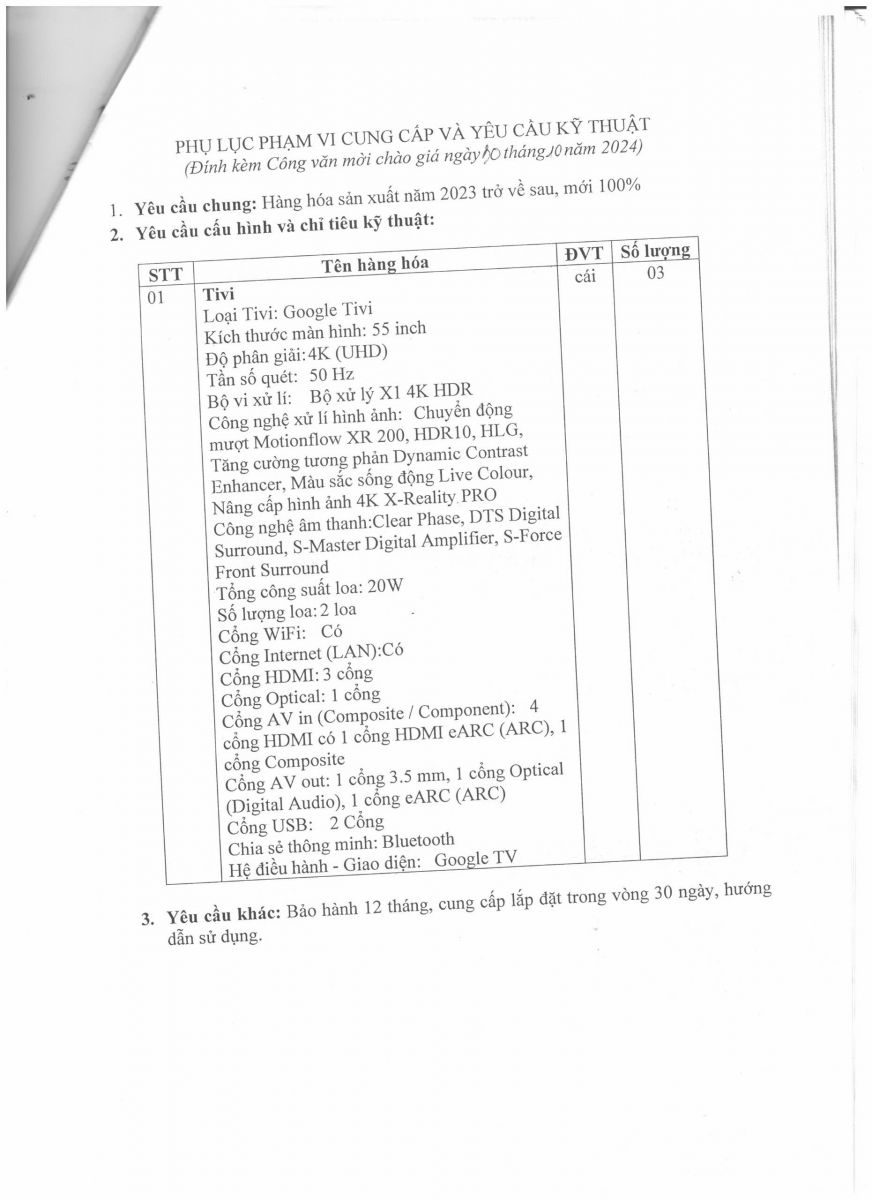 Thời gian nhận hồ sơ chào giá: từ ngày ra thông báo đến trước 14 giờ 00 ngày 08/11/2024