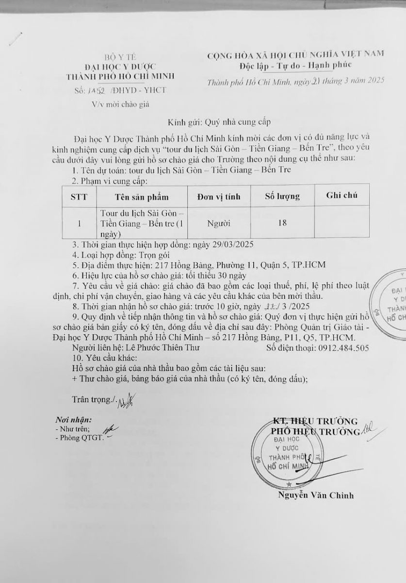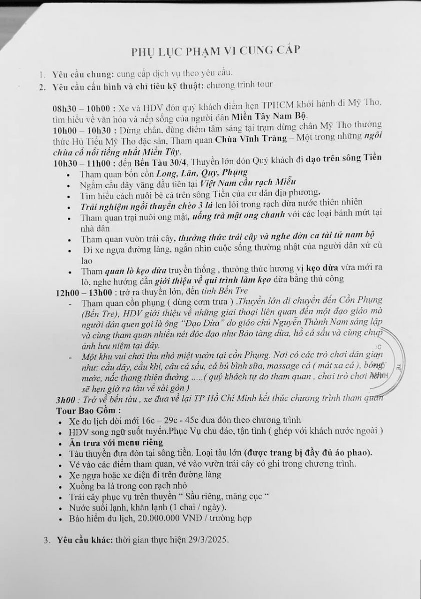 vx88 code mời chào giá: Cung cấp "Tour du lịch Sài Gòn-Tiền Giang-Bến Tre" phục vụ Hội nghị cho Khoa Y học Cổ truyền - vx88 esball vx88b