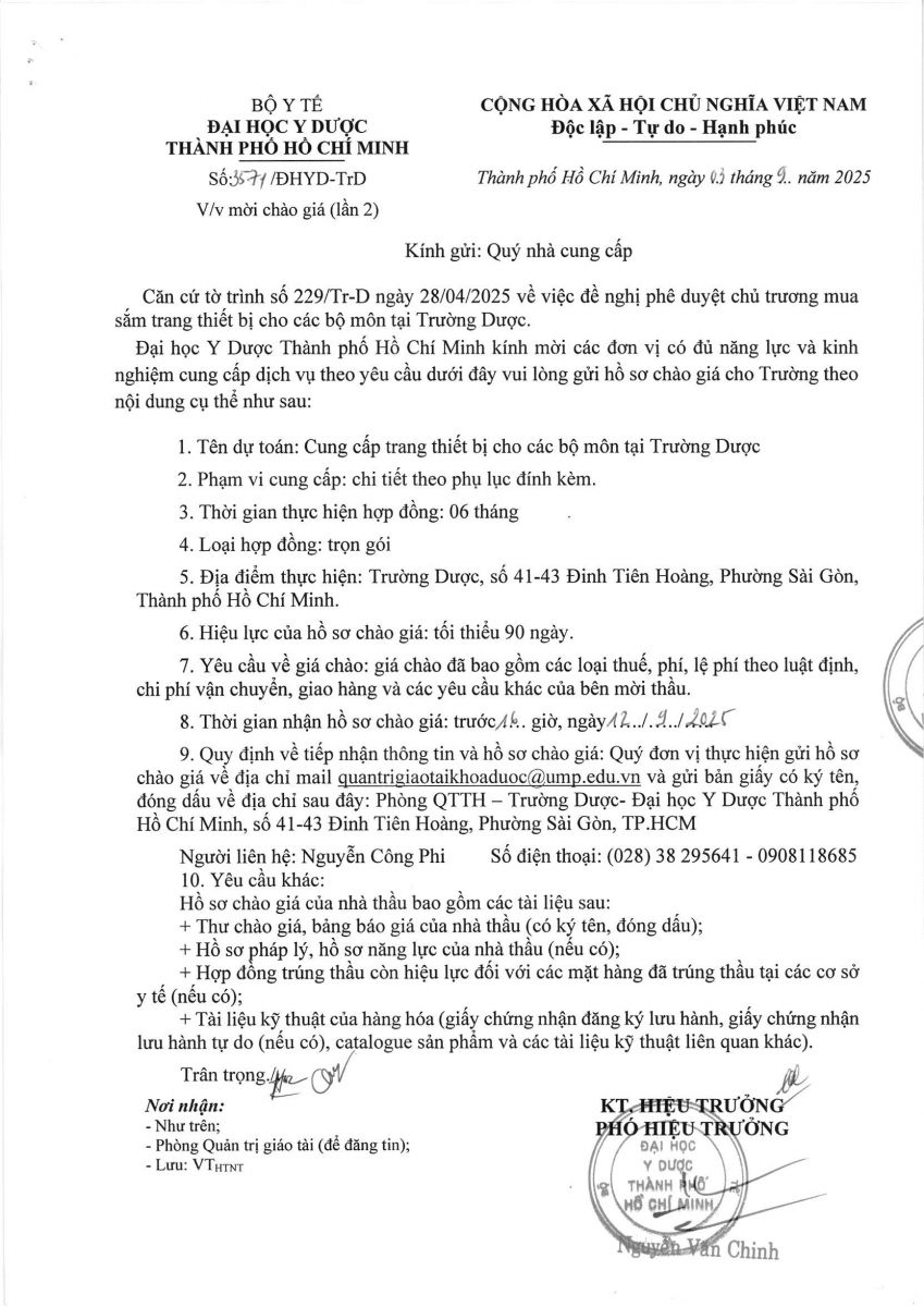 Thời gian nhận hồ sơ chào giá: từ ngày ra thông báo đến trước 16 giờ, ngày 12/9/2025