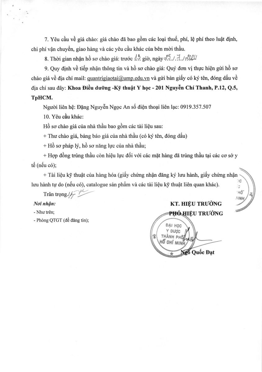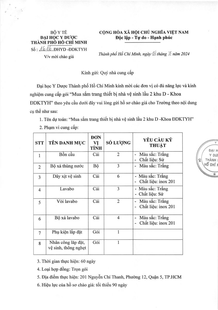 Thời gian nhận hồ sơ chào giá: từ ngày ra thông báo đến trước 13 giờ 00 ngày 25/7/2024