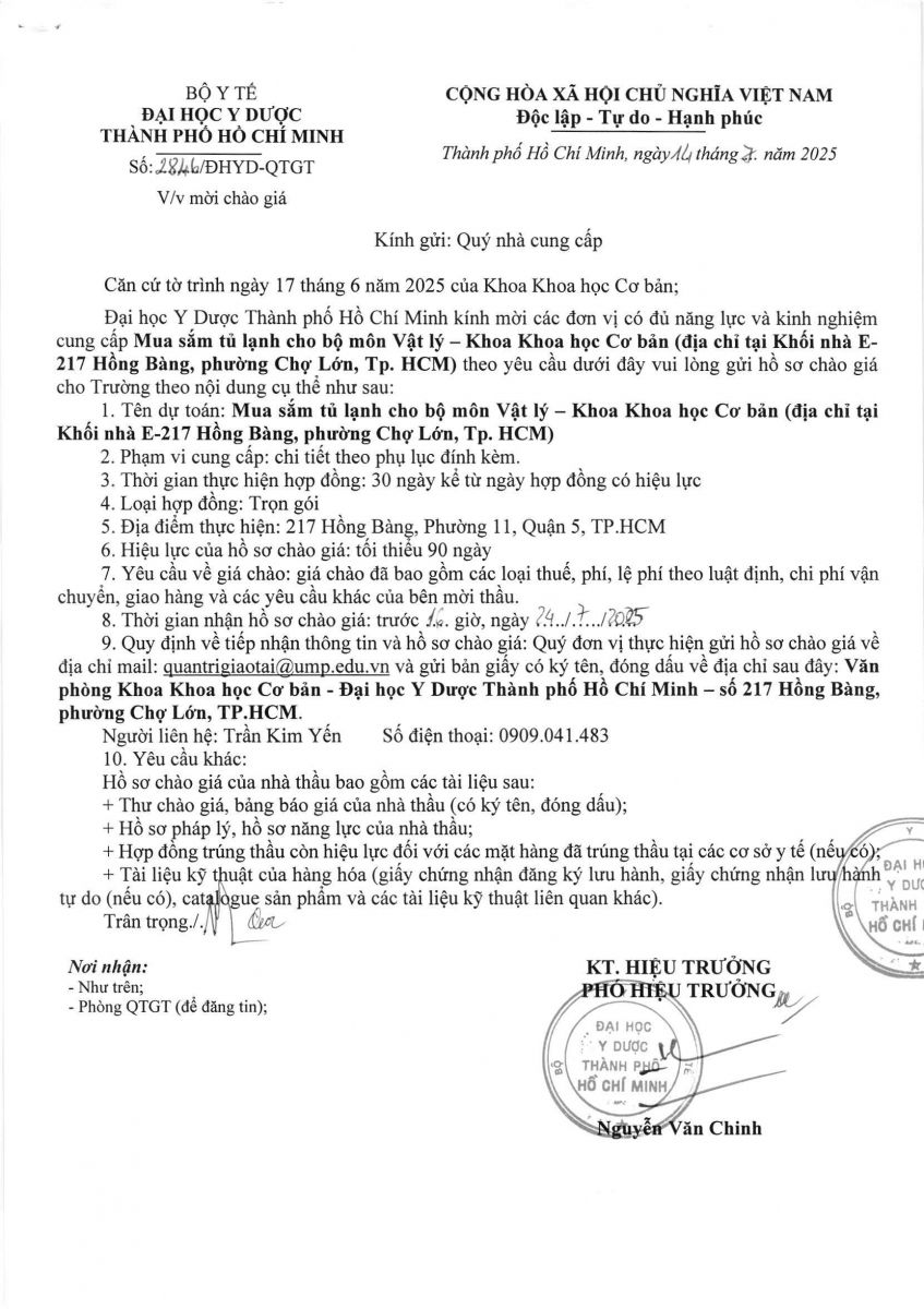Thời gian nhận hồ sơ chào giá: từ ngày ra thông báo đến trước 16 giờ, ngày 24/7/2025