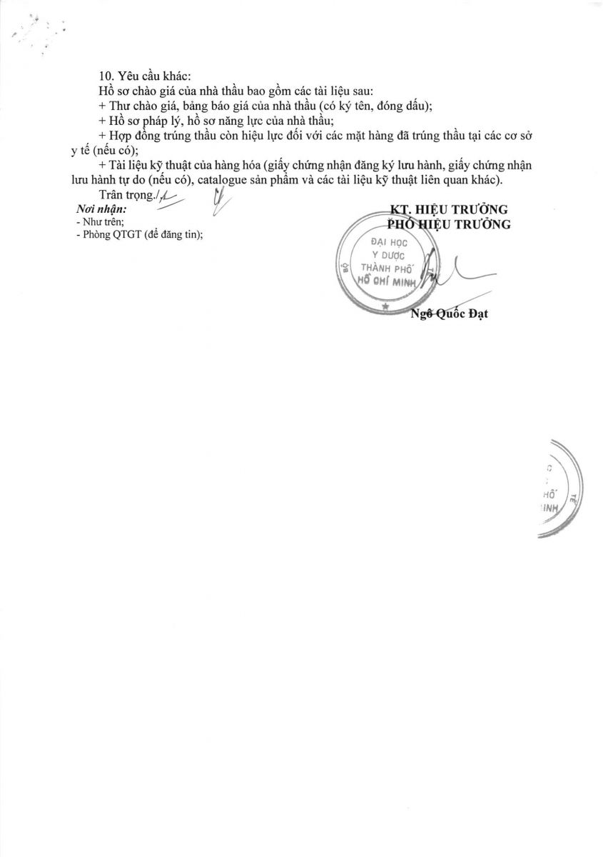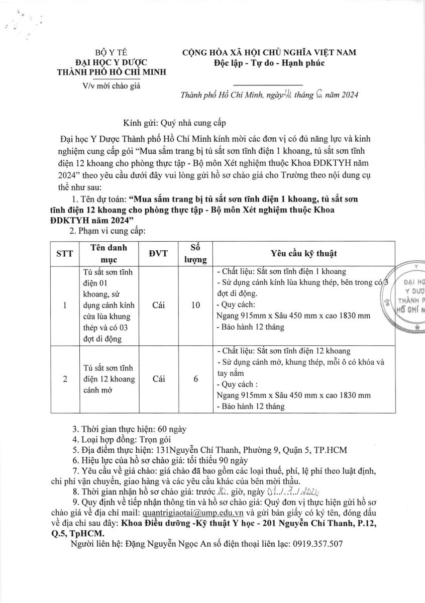 Thời gian nhận hồ sơ chào giá: từ ngày ra thông báo đến trước 10 giờ 00 ngày 01/7/2024