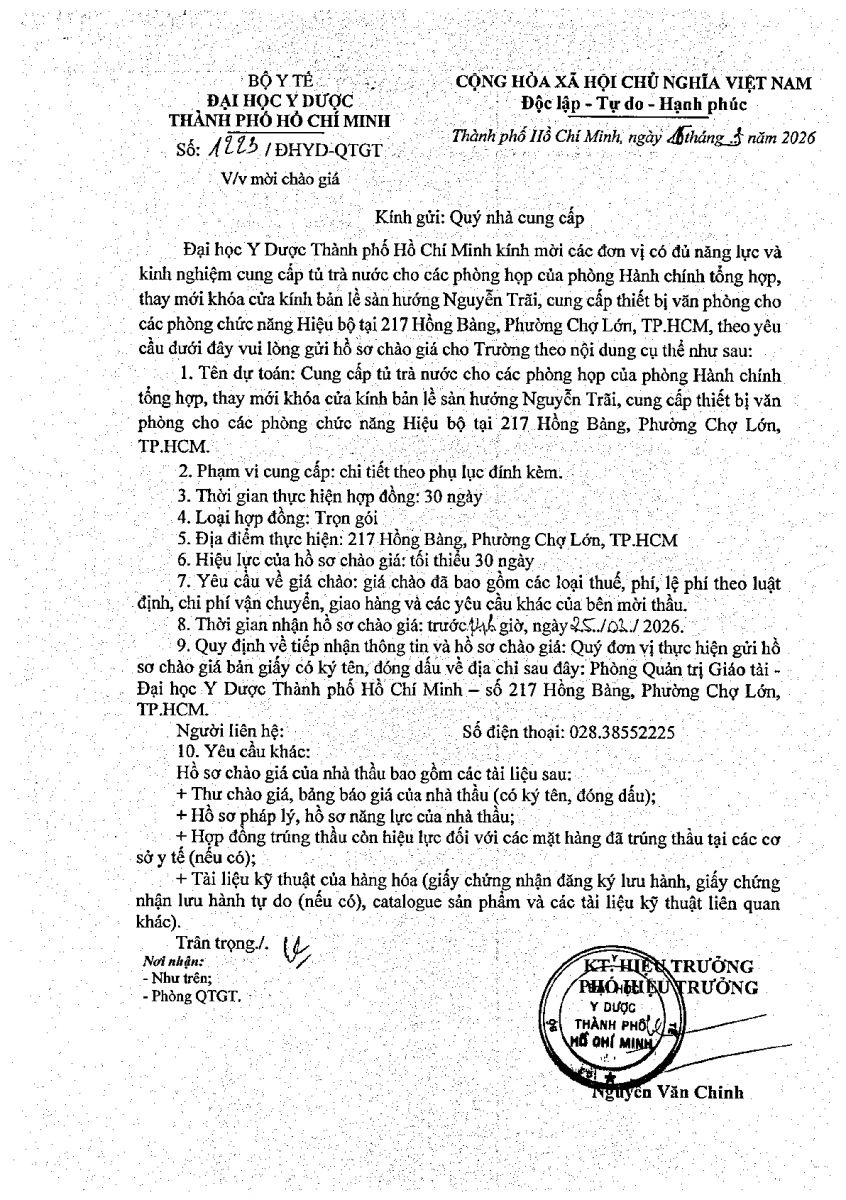 Thời gian nhận hồ sơ chào giá: từ ngày ra thông báo đến trước 16 giờ 00, ngày 25/3/2026