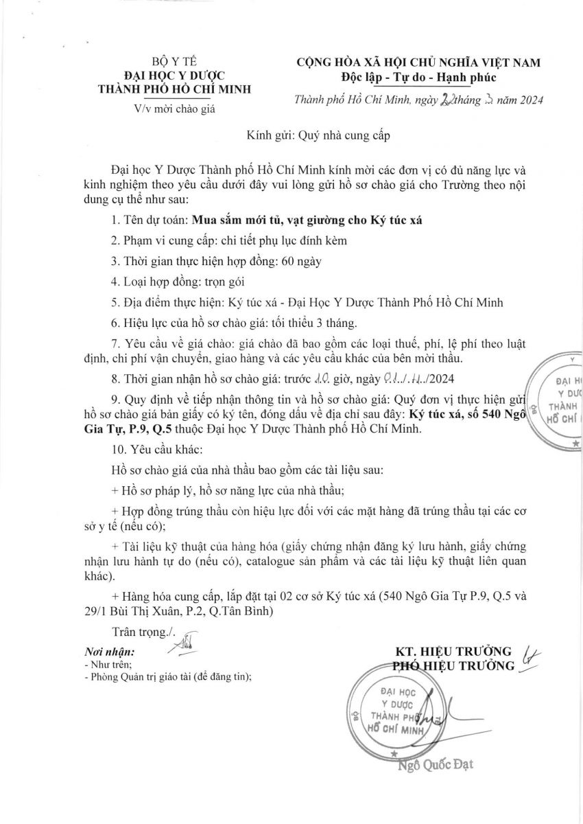 Thời gian nhận hồ sơ chào giá: từ ngày ra thông báo đến trước 10 giờ 00' ngày 01/4/2024