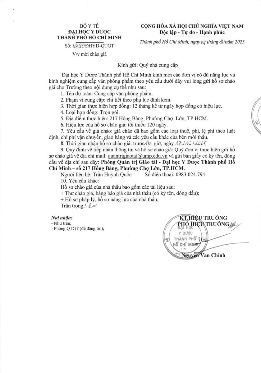Thời gian nhận hồ sơ chào giá: từ ngày ra thông báo đến trước 16 giờ ngày 17/10/2025
