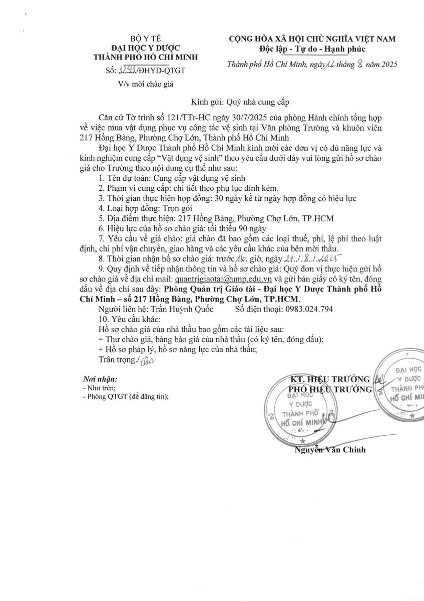 Thời gian nhận hồ sơ chào giá: từ ngày ra thông báo đến trước 16 giờ, ngày 21/8/2025