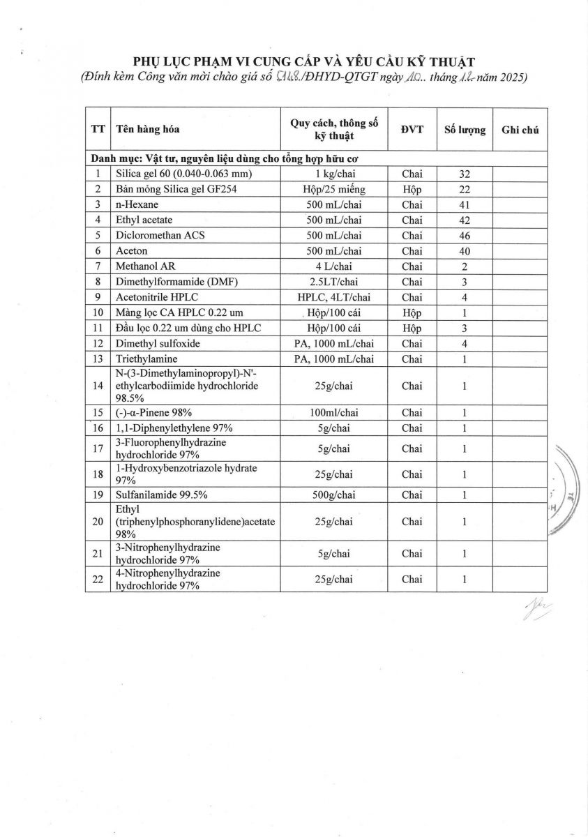 Thời gian nhận hồ sơ chào giá: từ ngày ra thông báo đến trước 16 giờ, ngày 19/12/2025