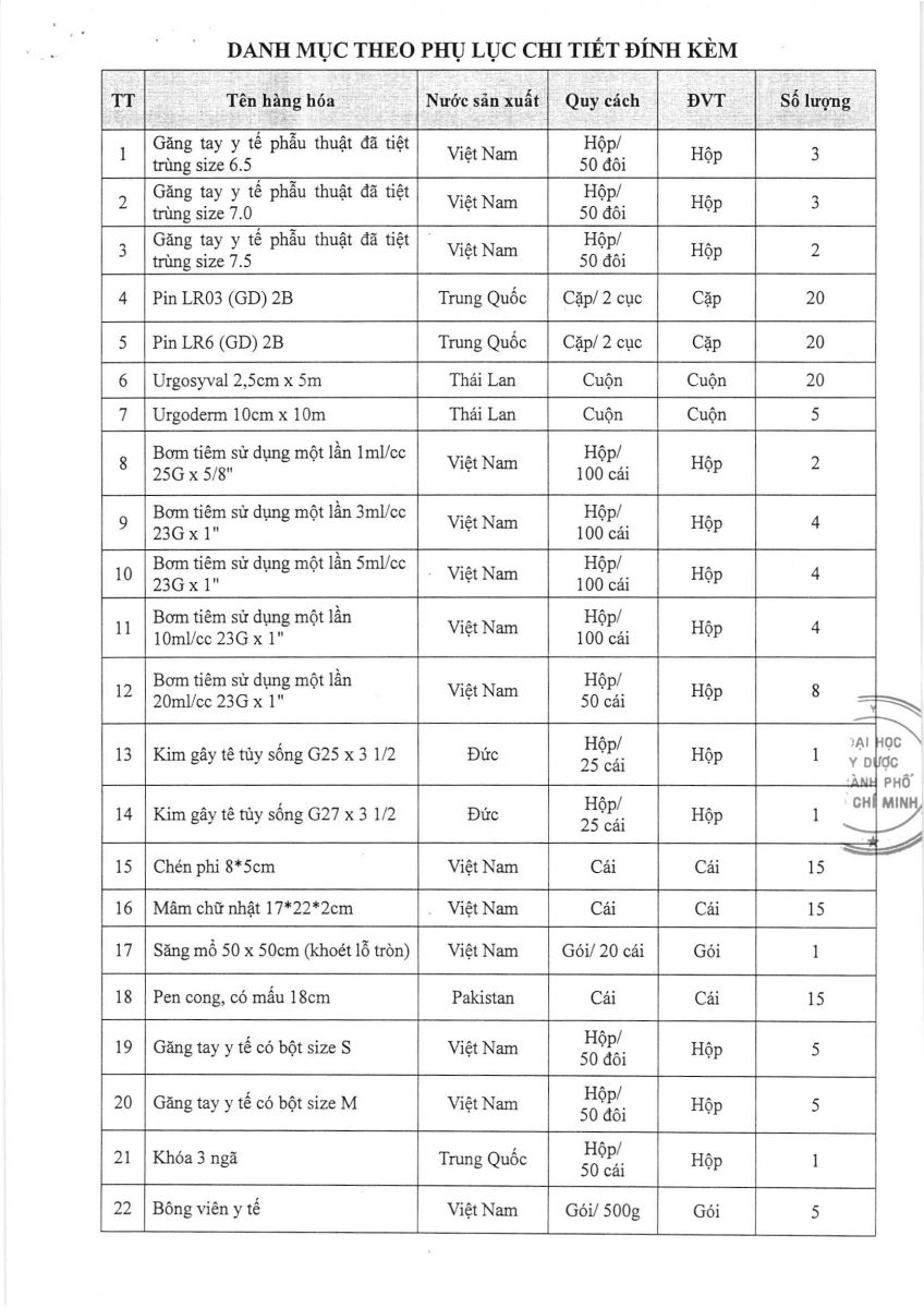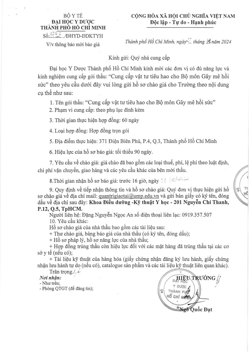 vx88 code mời chào giá: " Cung cấp vật tư tiêu hao cho Bộ môn gây mê hồi sức - KĐD-KTYH- Đại Học vx88b TP.HCM