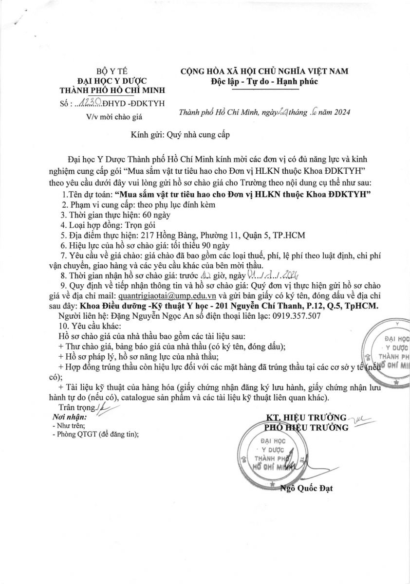 Thời gian nhận hồ sơ chào giá: từ ngày ra thông báo đến trước 10 giờ ngày 01/7/2024