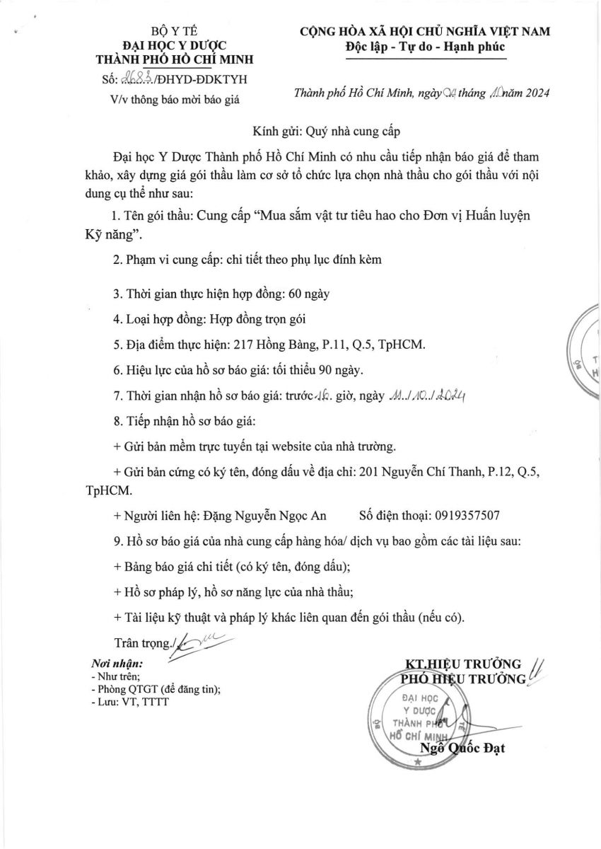 Thời gian nhận hồ sơ chào giá: từ ngày ra thông báo đến trước 16 giờ ngày 11/10/2024