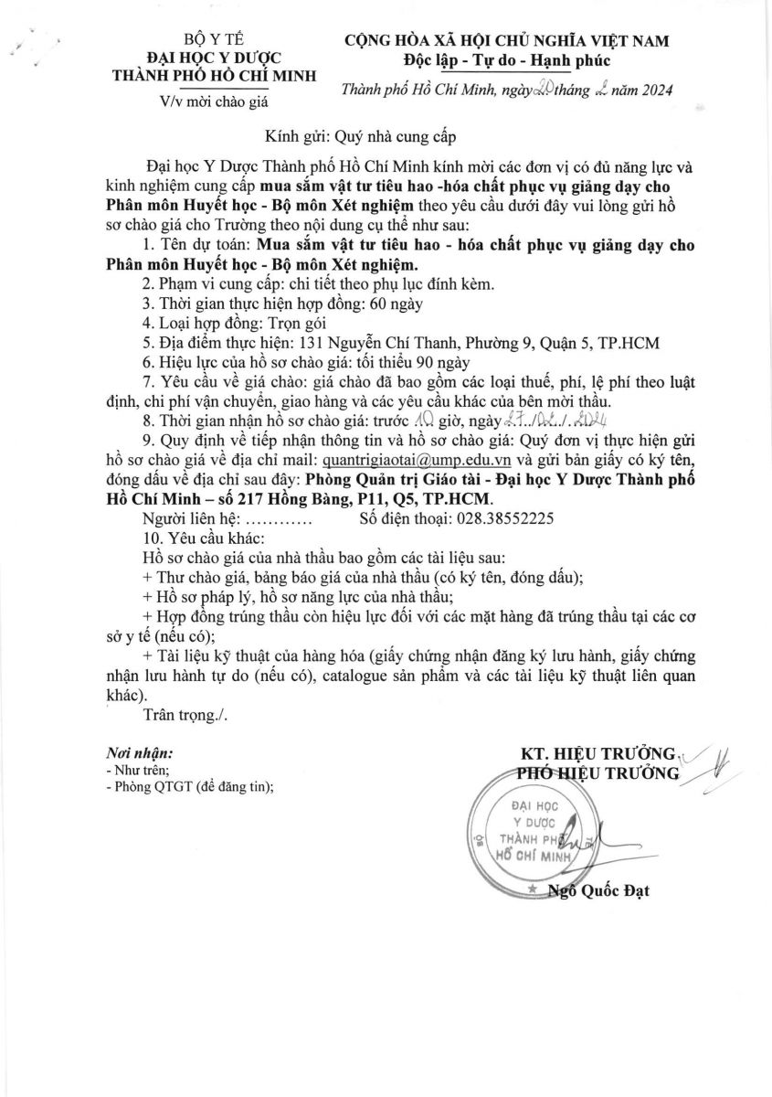 vx88 code mời chào giá: " Cung cấp vật tư tiêu hao- hóa chất phục vụ giảng dạy cho PM Huyết Học- BM Xét Nghiệm- K Điều Dưỡng- Đại Học vx88b Thành Phố vx88m