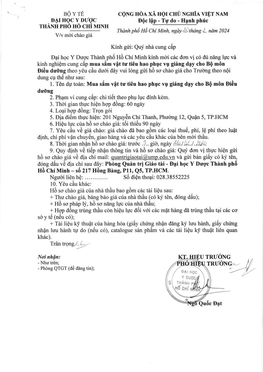 Thời gian nhận hồ sơ chào giá: từ ngày ra thông báo đến trước 9g00 ngày 26/02/2024