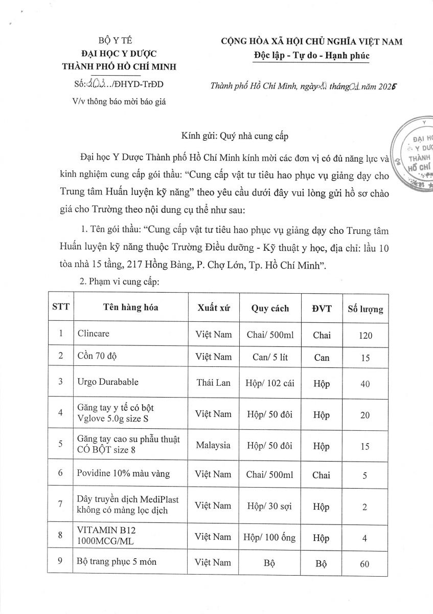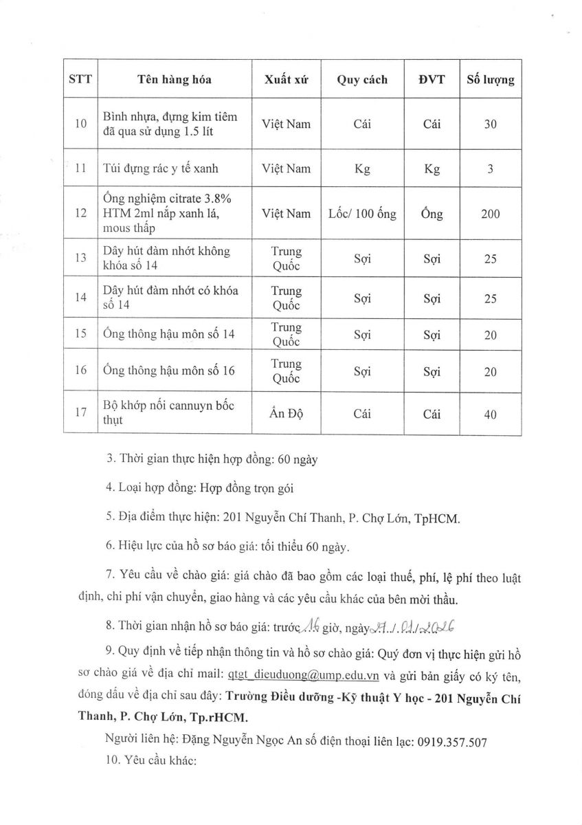 Thời gian nhận hồ sơ chào giá: từ ngày ra thông báo đến trước 16 giờ, ngày 27/01/2026