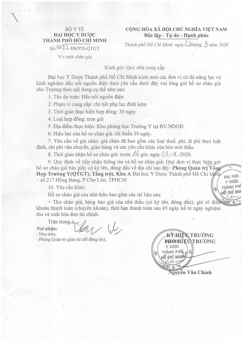 Thời gian nhận hồ sơ chào giá: từ ngày ra thông báo đến trước 16 giờ 00, ngày 3/4/2026