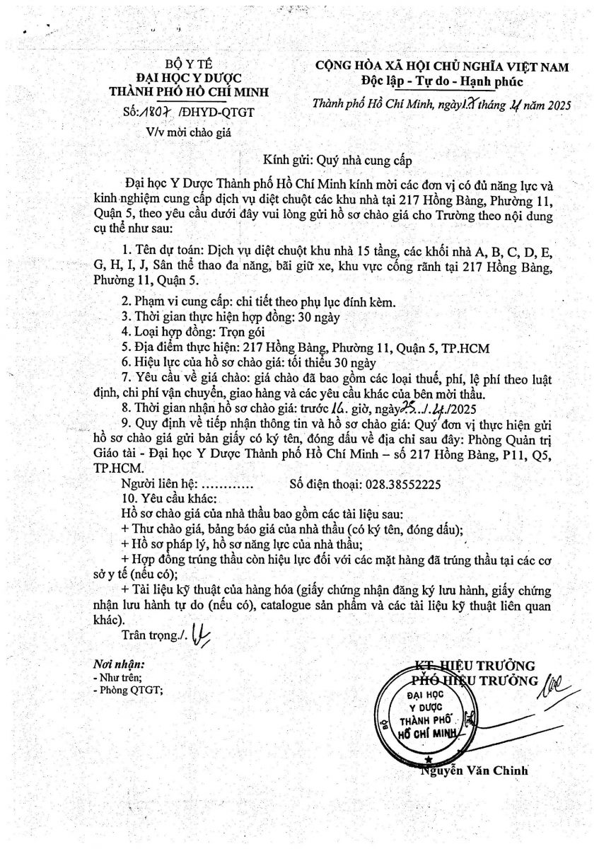 Thời gian nhận hồ sơ chào giá: từ ngày ra thông báo đến trước 16 giờ, ngày 25/4/2025