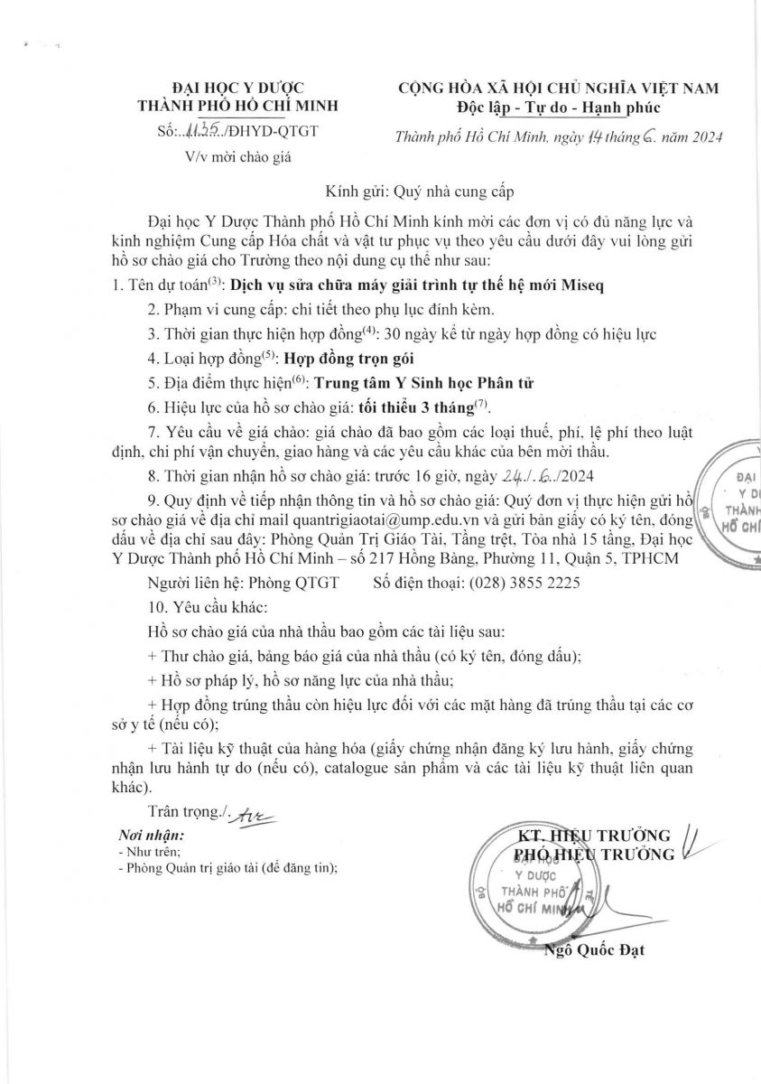 Thời gian nhận hồ sơ chào giá: từ ngày ra thông báo đến trước 16 giờ 00' ngày 24/6/2024