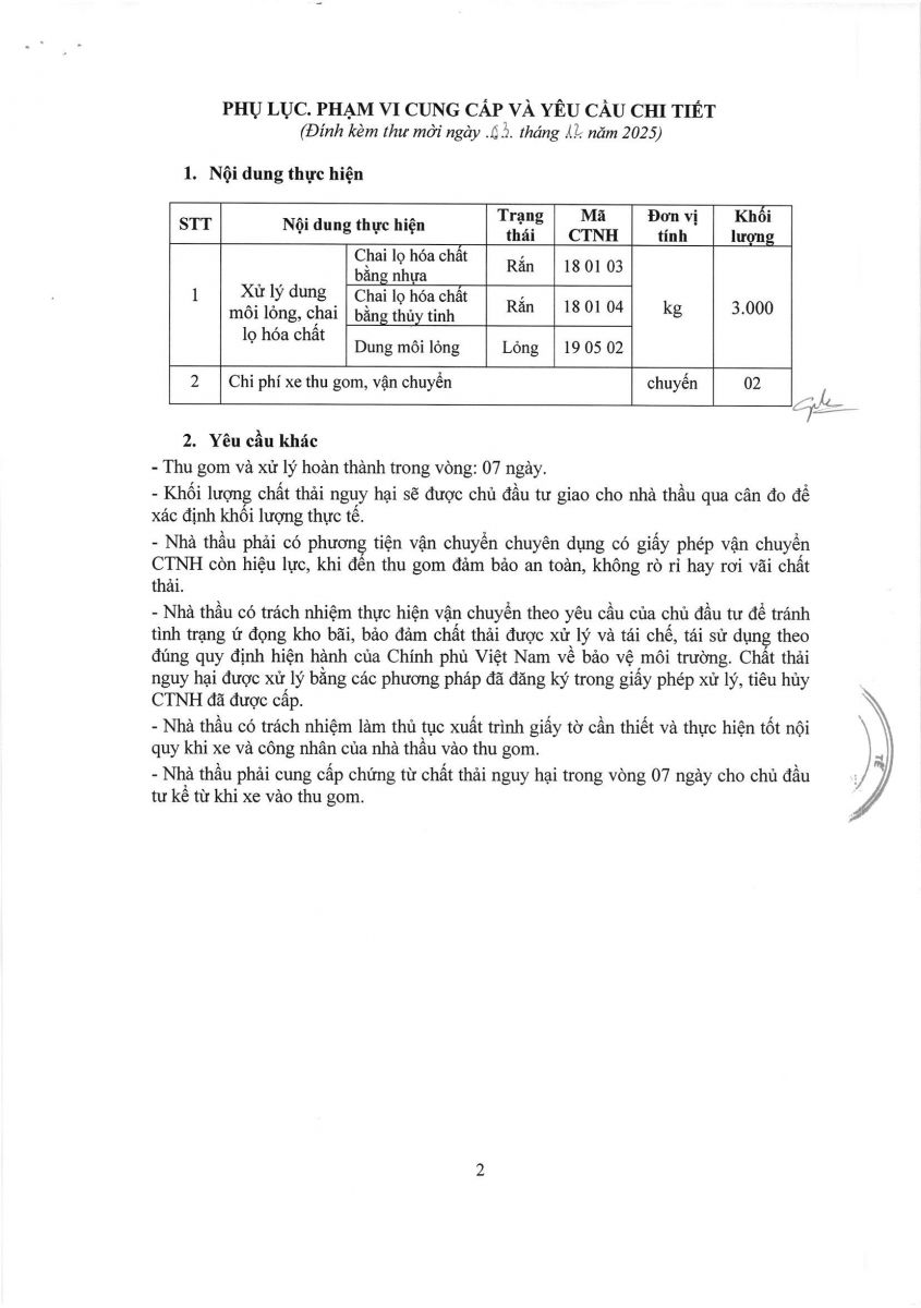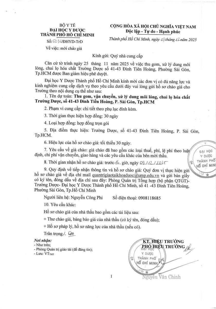 Thời gian nhận hồ sơ chào giá: từ ngày ra thông báo đến trước 16 giờ, ngày 09/12/2025