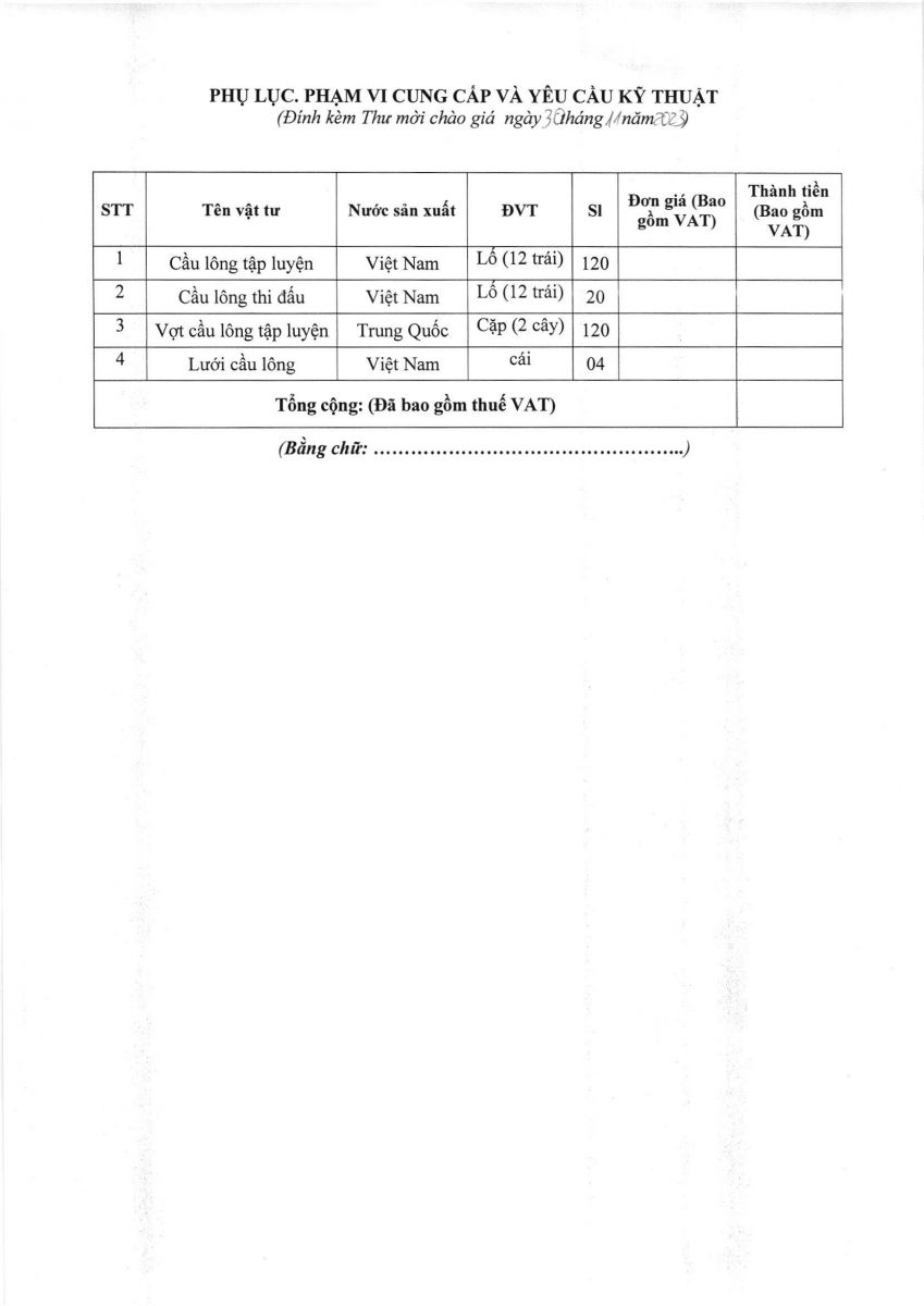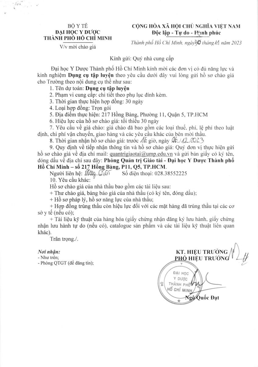 Thời gian nhận hồ sơ chào giá: từ ngày ra thông báo đến trước 16g00 ngày 06/12/2023