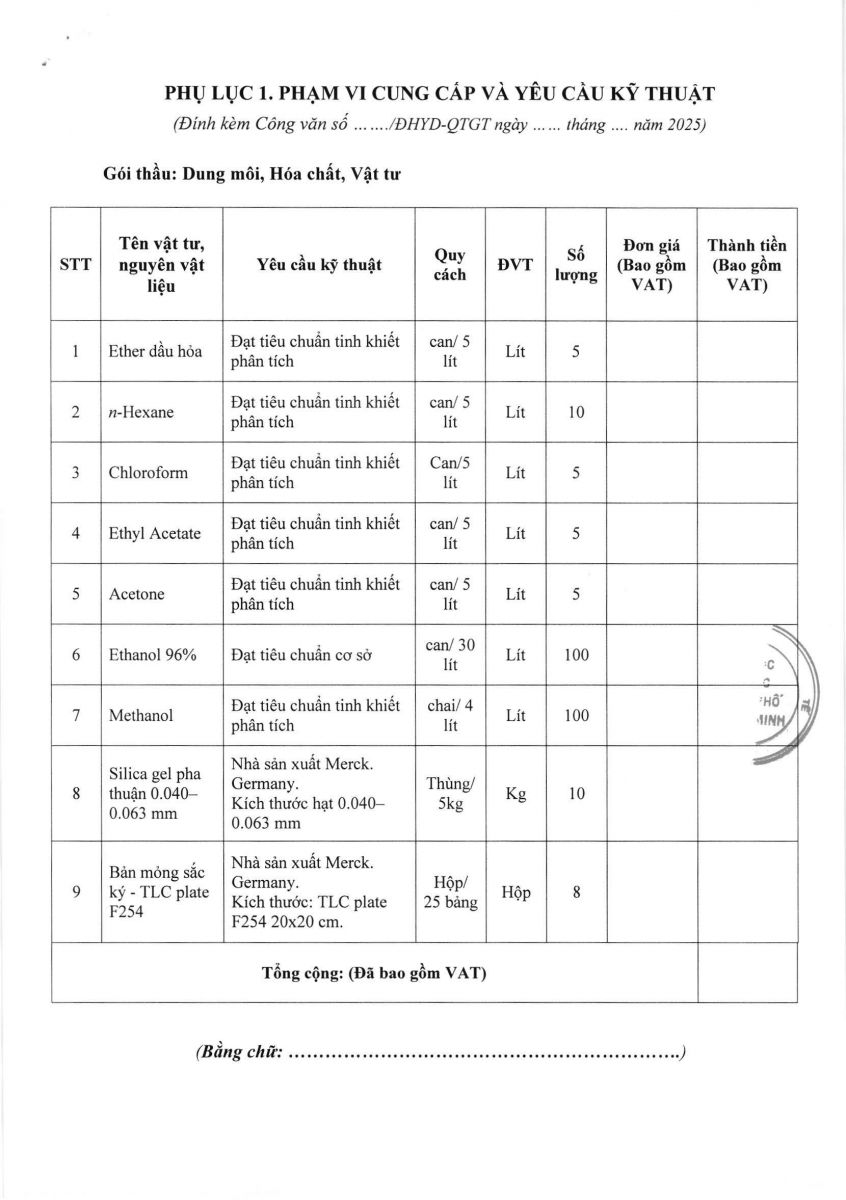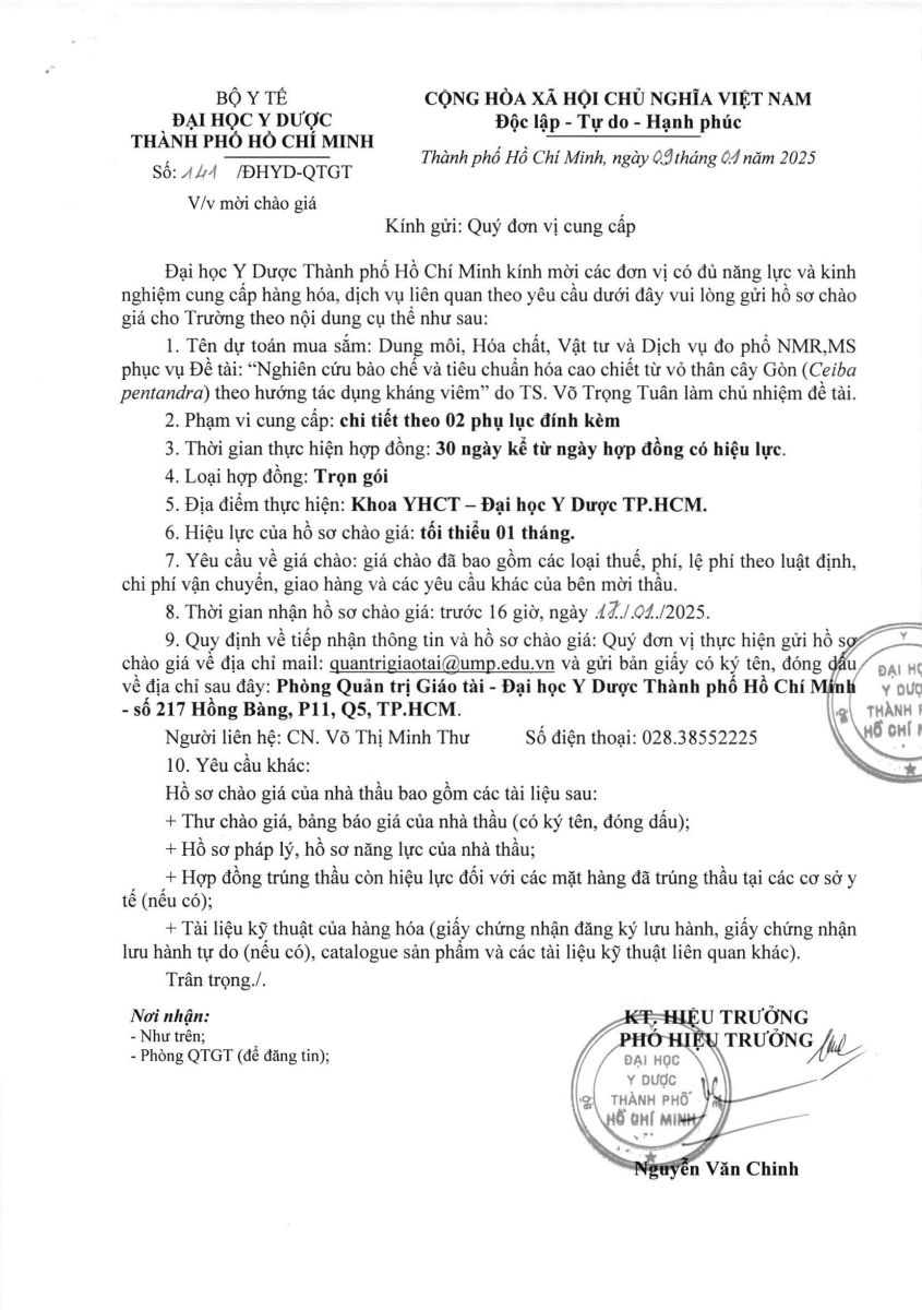 Thời gian nhận hồ sơ chào giá: từ ngày ra thông báo đến trước 16 giờ, ngày 17/01/2025