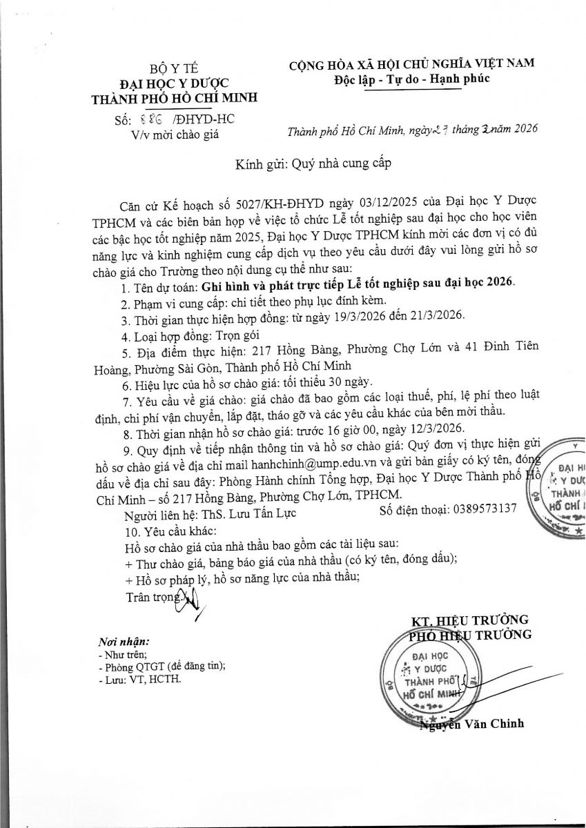 Thời gian nhận hồ sơ chào giá: từ ngày ra thông báo đến trước 16 giờ 00, ngày 12/3/2026.