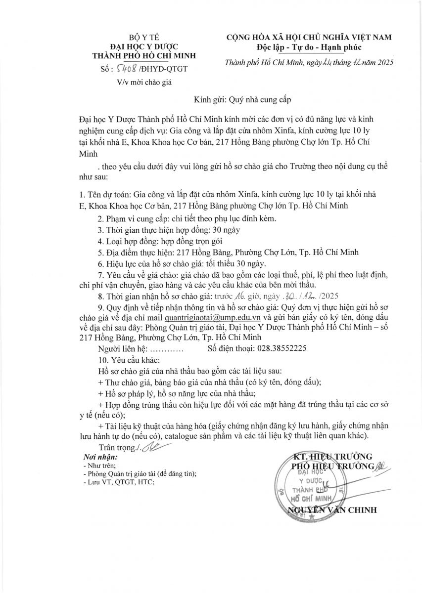 Thời gian nhận hồ sơ chào giá: từ ngày ra thông báo đến trước 16 giờ, ngày 30/12/2025