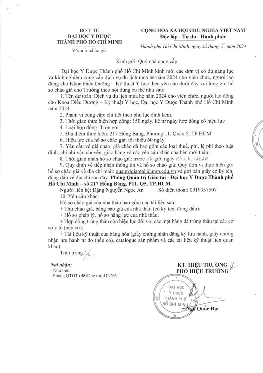 vx88 code mời chào giá: "Gói cung cấp dịch vụ du lịch nghỉ hè cho Khoa Điều dưỡng Kỹ thuật Y học" - vx88 esball vx88b