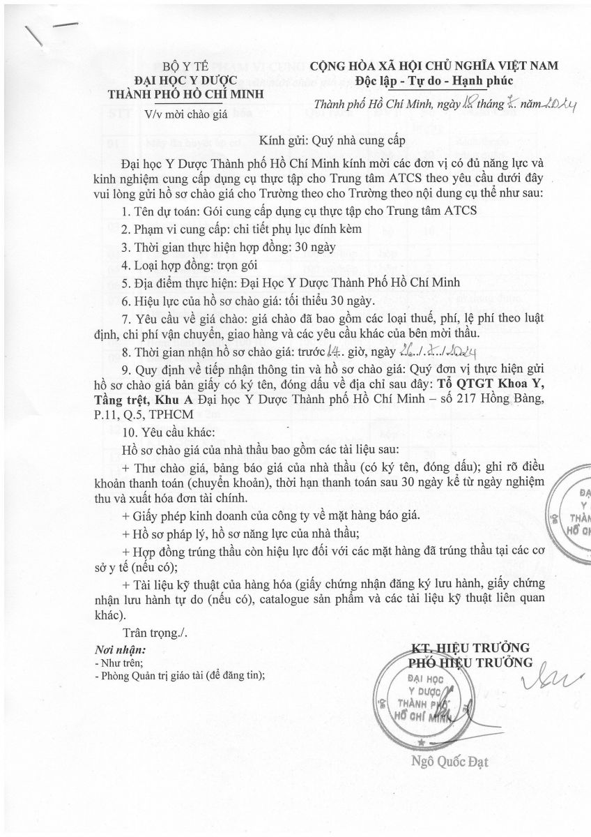 Thời gian nhận hồ sơ chào giá: từ ngày ra thông báo đến trước 14 giờ 00' ngày 26/7/2024