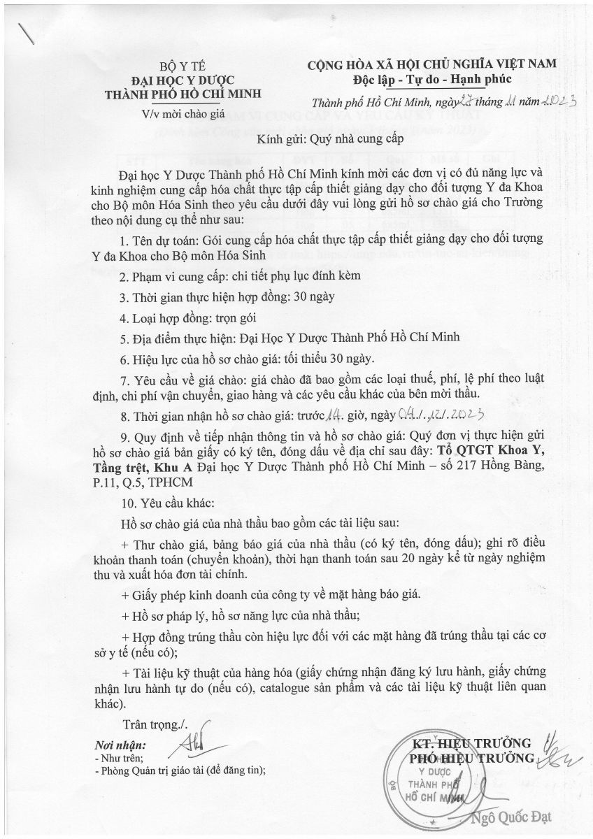 vx88 code mời chào giá: "Gói cung cấp hóa chất thực tập cấp thiết giảng dạy cho đối tượng Y đa khoa của BM Hóa Sinh" Khoa Y - vx88 esball vx88b