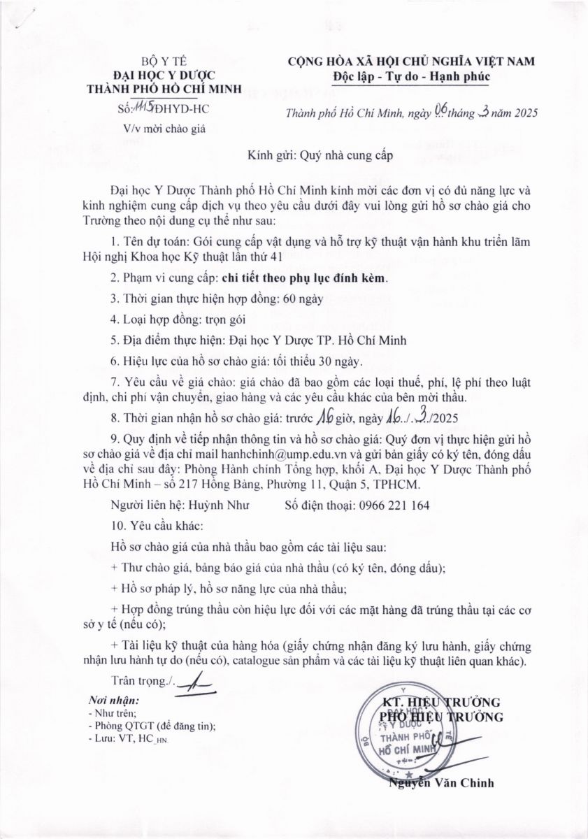 Thời gian nhận hồ sơ chào giá: từ ngày ra thông báo đến trước 16 giờ, ngày 16/03/2025