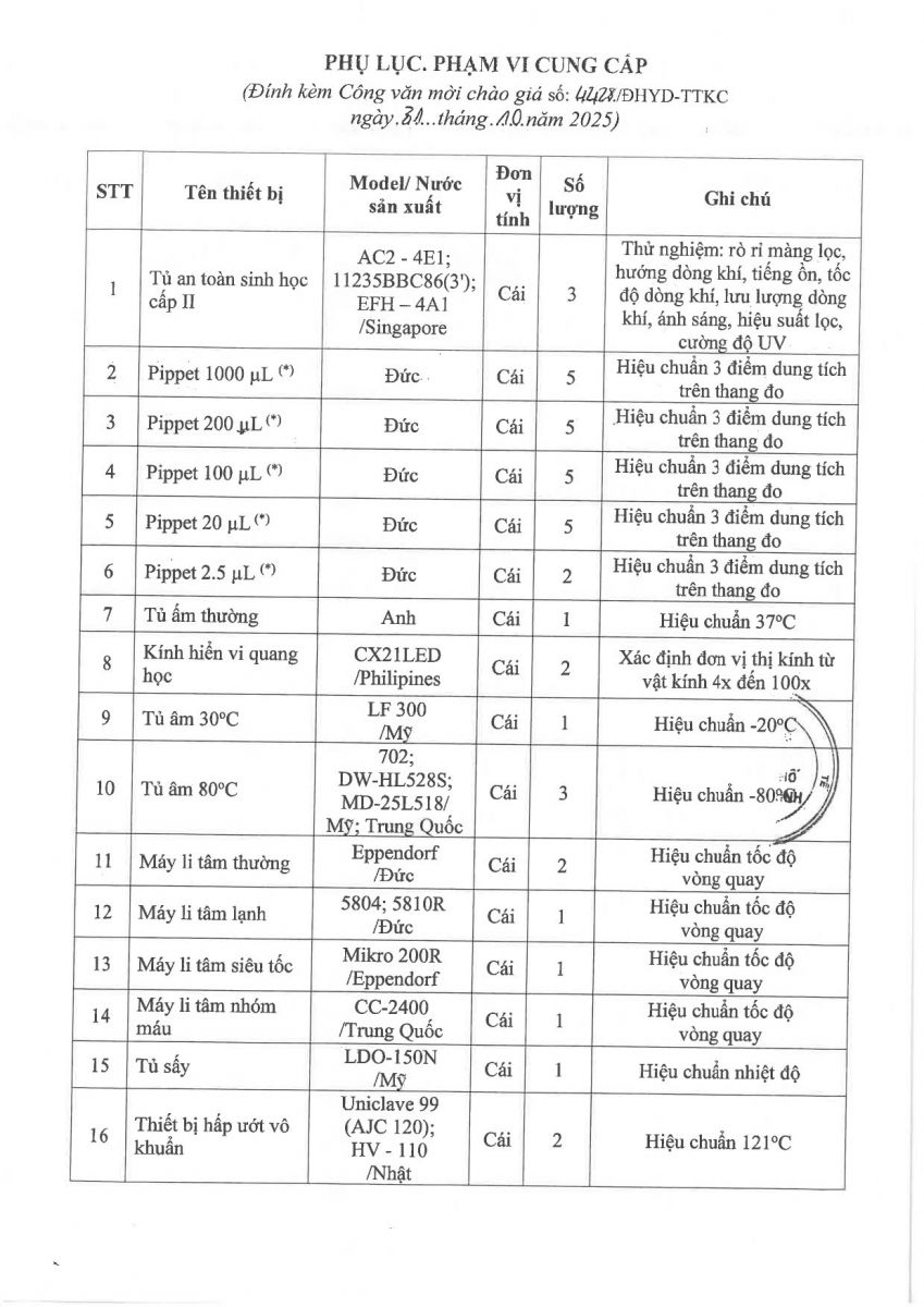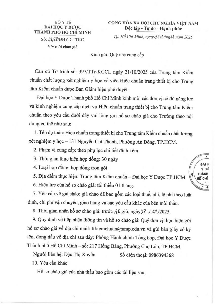 Thời gian nhận hồ sơ chào giá: từ ngày ra thông báo đến trước 16 giờ, ngày 08/11/2025