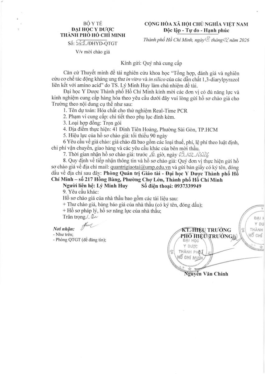 Thời gian nhận hồ sơ chào giá: từ ngày ra thông báo đến trước 16 giờ, ngày 09/02/2026