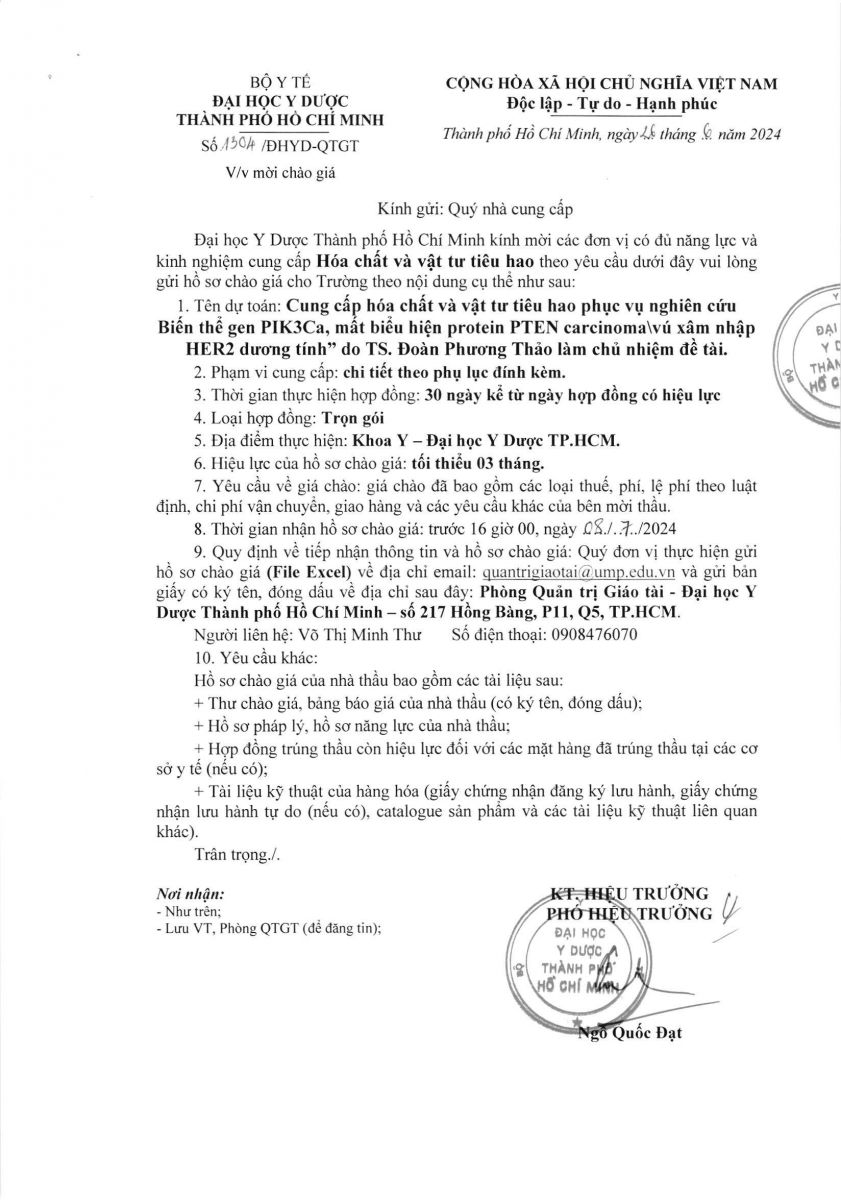 Thời gian nhận hồ sơ chào giá: từ ngày ra thông báo đến trước 16 giờ 00 ngày 08/7/2024