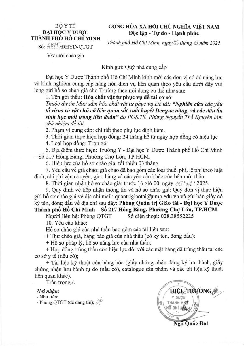 Thời gian nhận hồ sơ chào giá: từ ngày ra thông báo đến trước 16 giờ, ngày 05/12/2025