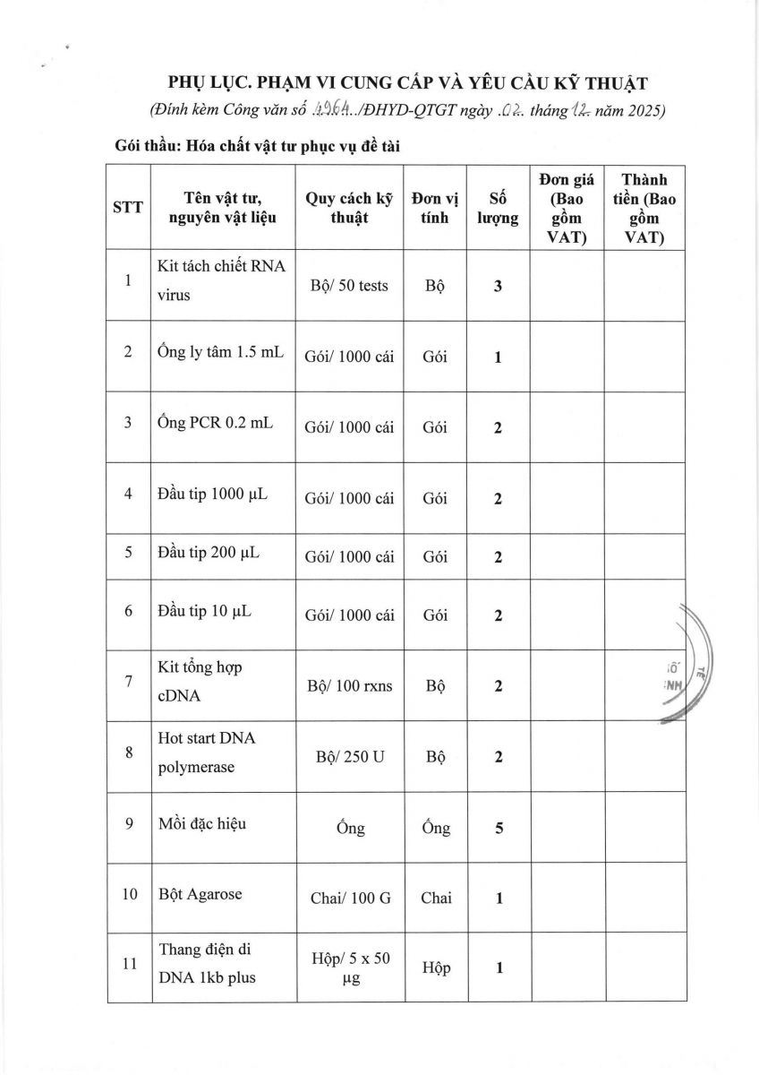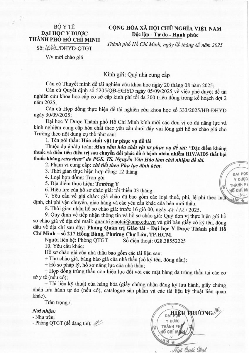 Thời gian nhận hồ sơ chào giá: từ ngày ra thông báo đến trước 16 giờ, ngày 17/12/2025