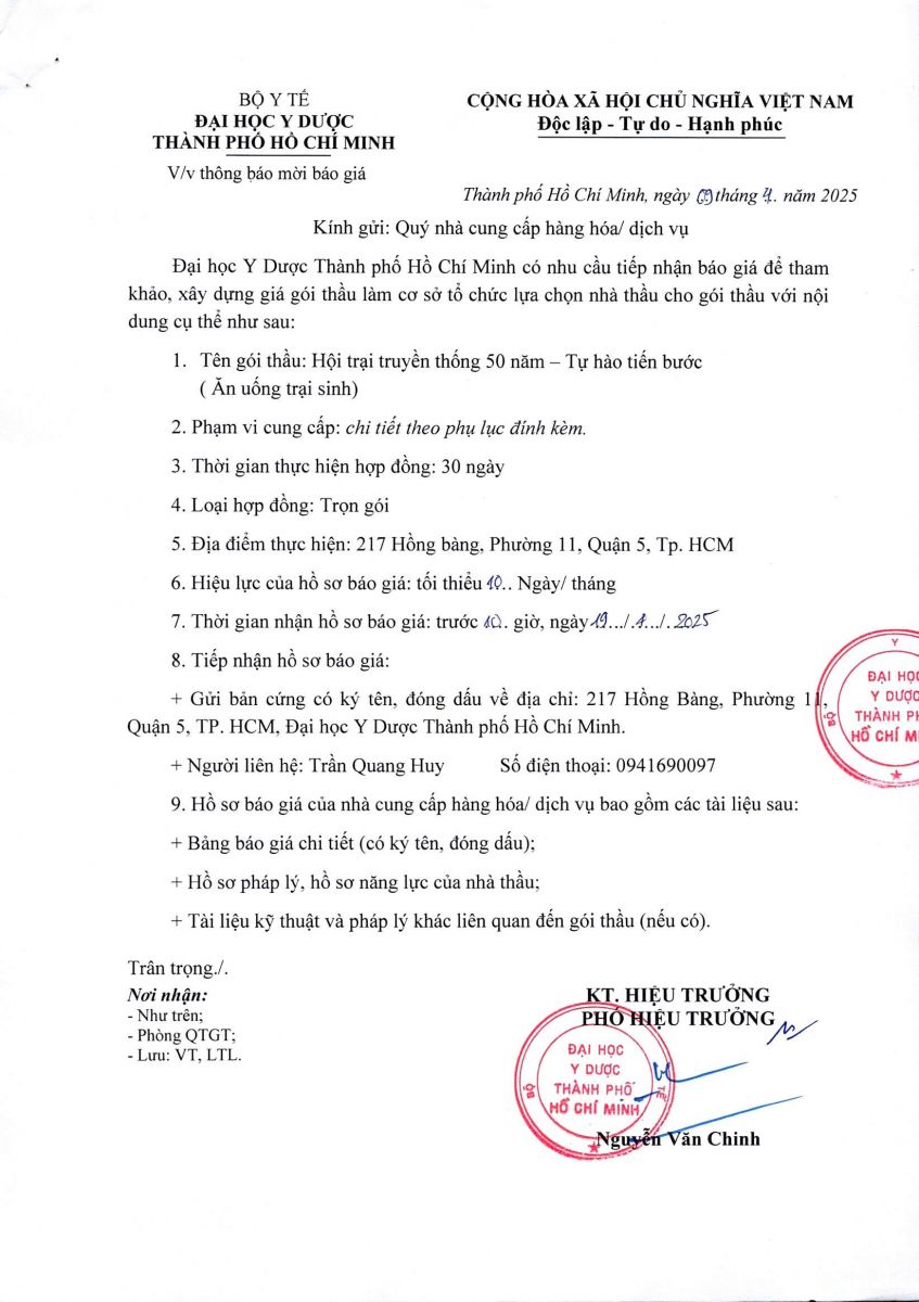 Thời gian nhận hồ sơ chào giá: từ ngày ra thông báo đến trước 10 giờ, ngày 20/4/2025