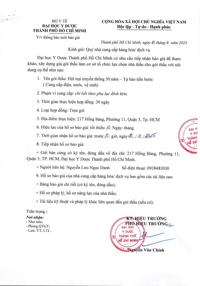 Thời gian nhận hồ sơ chào giá: từ ngày ra thông báo đến trước 10 giờ, ngày 20/4/2025