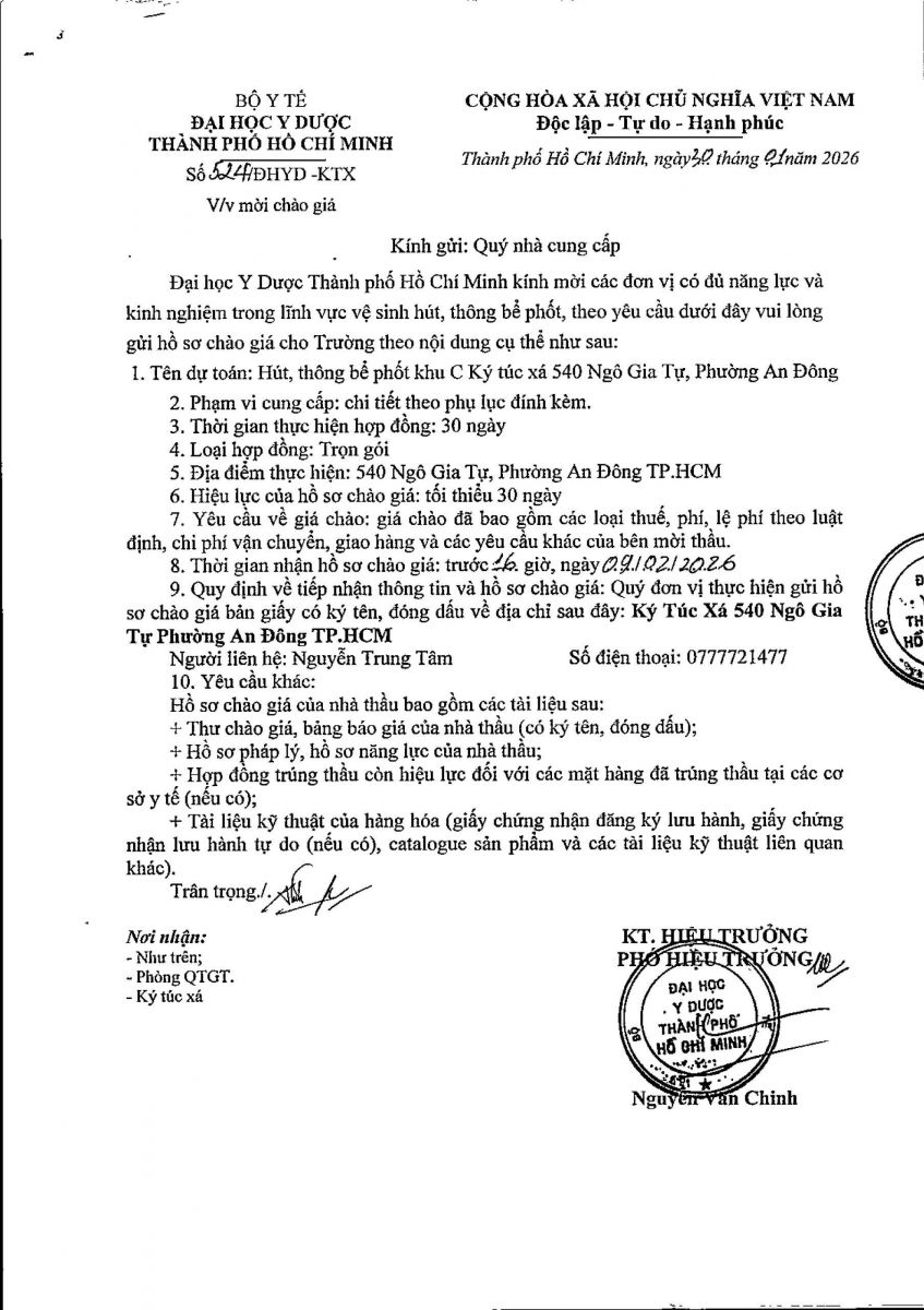 Thời gian nhận hồ sơ chào giá: từ ngày ra thông báo đến trước 16 giờ, ngày 09/02/2026