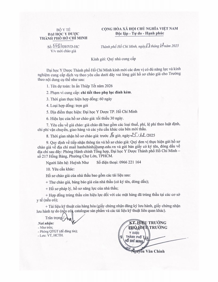 Thời gian nhận hồ sơ chào giá: từ ngày ra thông báo đến trước 16 giờ, ngày 25/12/2025