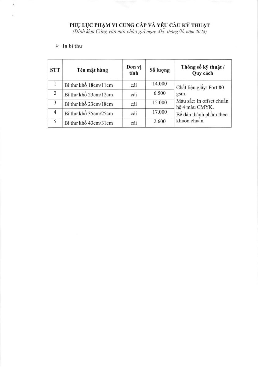 Thời gian nhận hồ sơ chào giá: từ ngày ra thông báo đến trước 16g00 ngày 25/01/2024