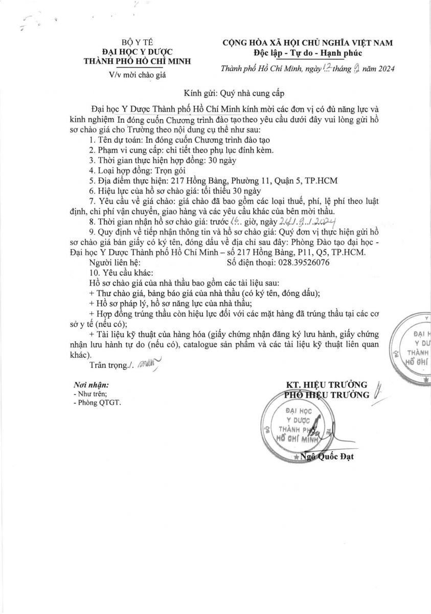 Thời gian nhận hồ sơ chào giá: từ ngày ra thông báo đến trước 16 giờ 00 ngày 24/9/2024