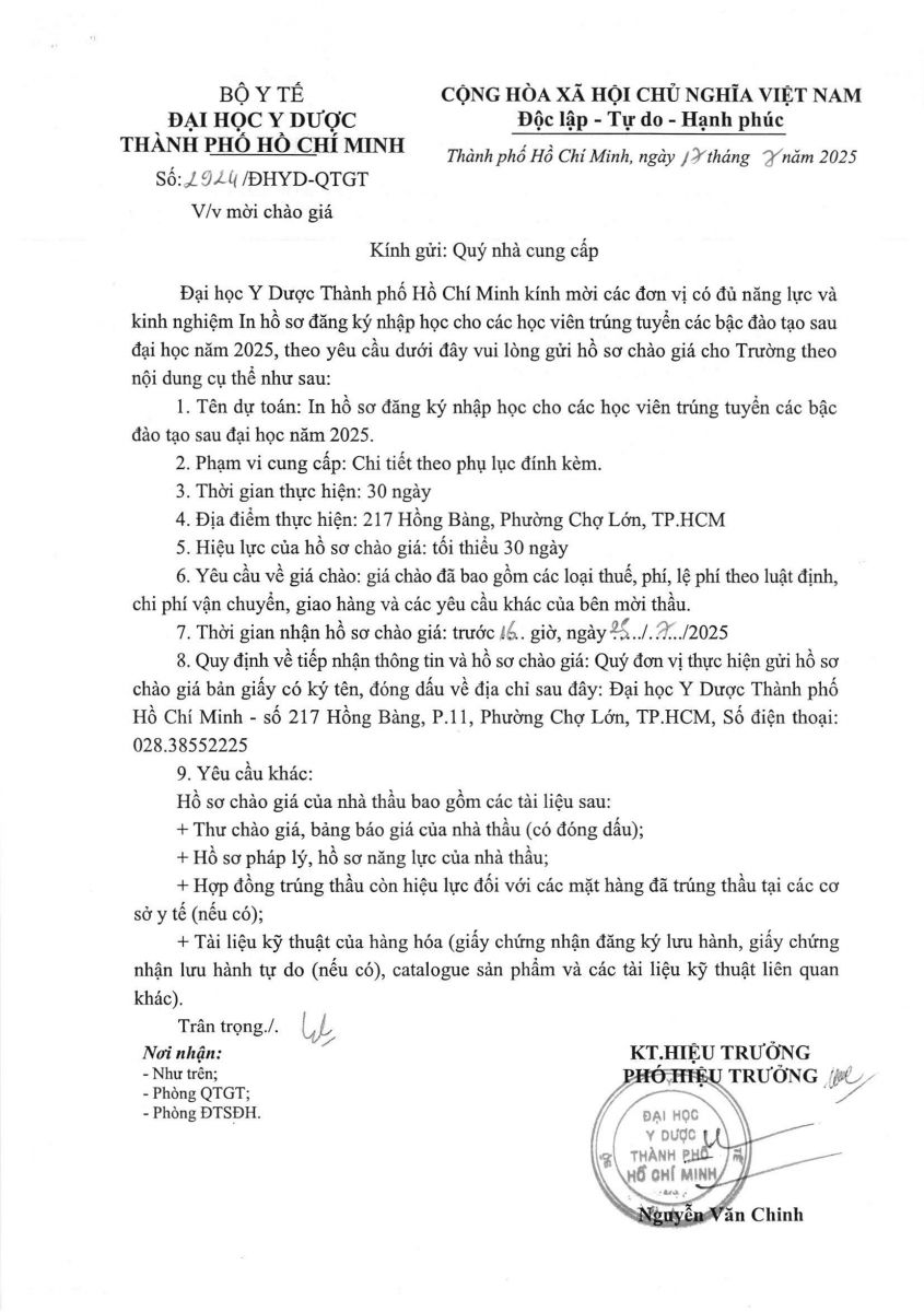 Thời gian nhận hồ sơ chào giá: từ ngày ra thông báo đến trước 16 giờ, ngày 25/7/2025