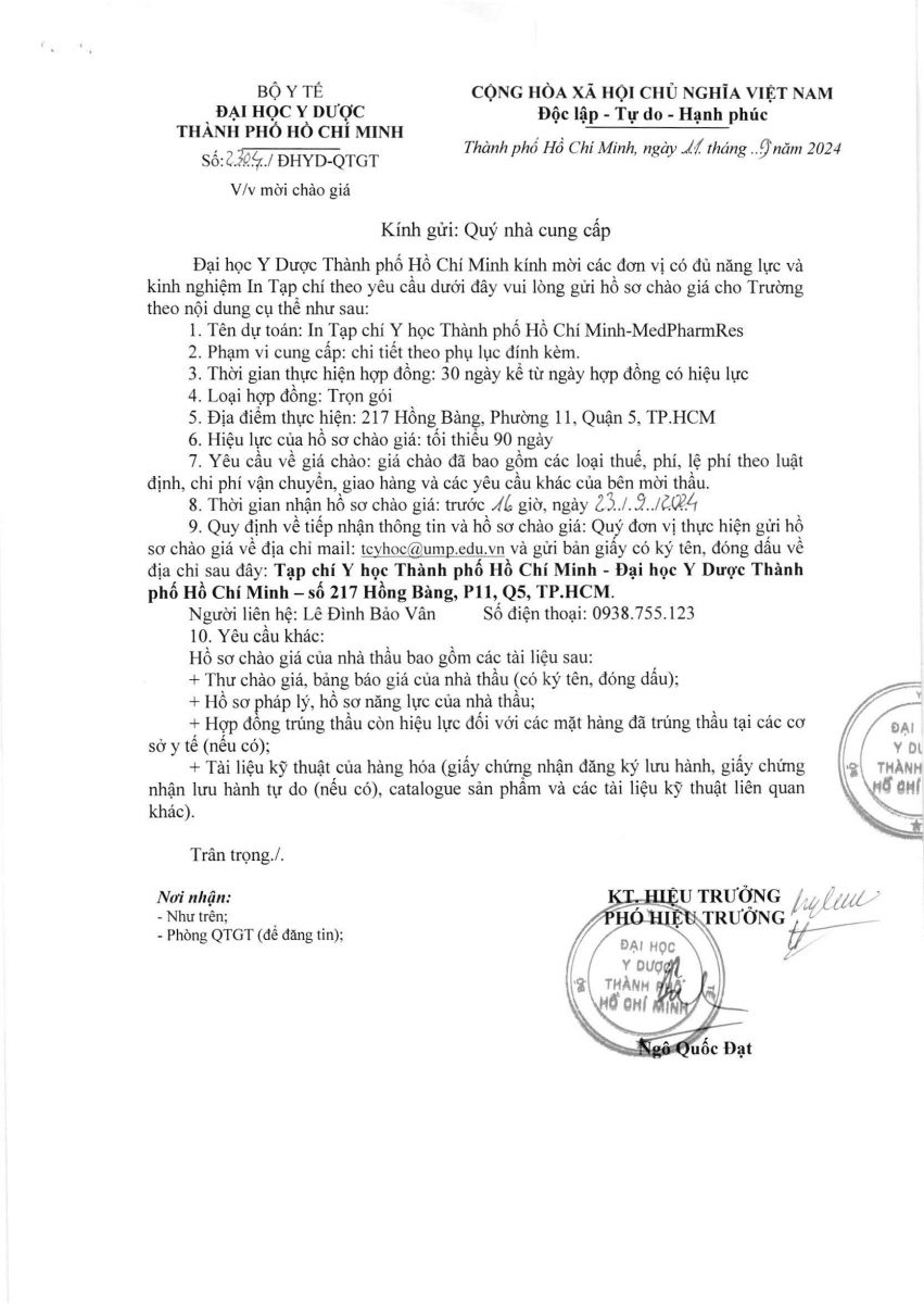 Thời gian nhận hồ sơ chào giá: từ ngày ra thông báo đến trước 16 giờ 00 ngày 23/9/2024