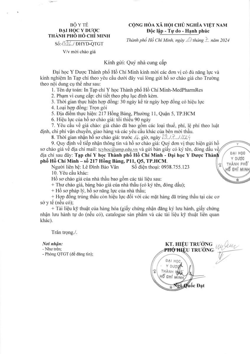 Thời gian nhận hồ sơ chào giá: từ ngày ra thông báo đến trước 16 giờ 00 ngày 29/7/2024