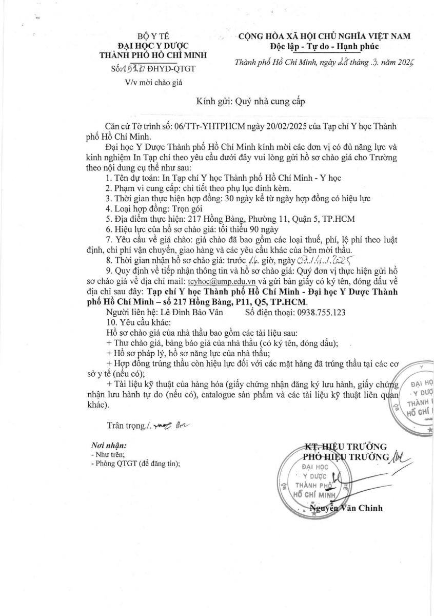 Thời gian nhận hồ sơ chào giá: từ ngày ra thông báo đến trước 16 giờ, ngày 07/4/2025