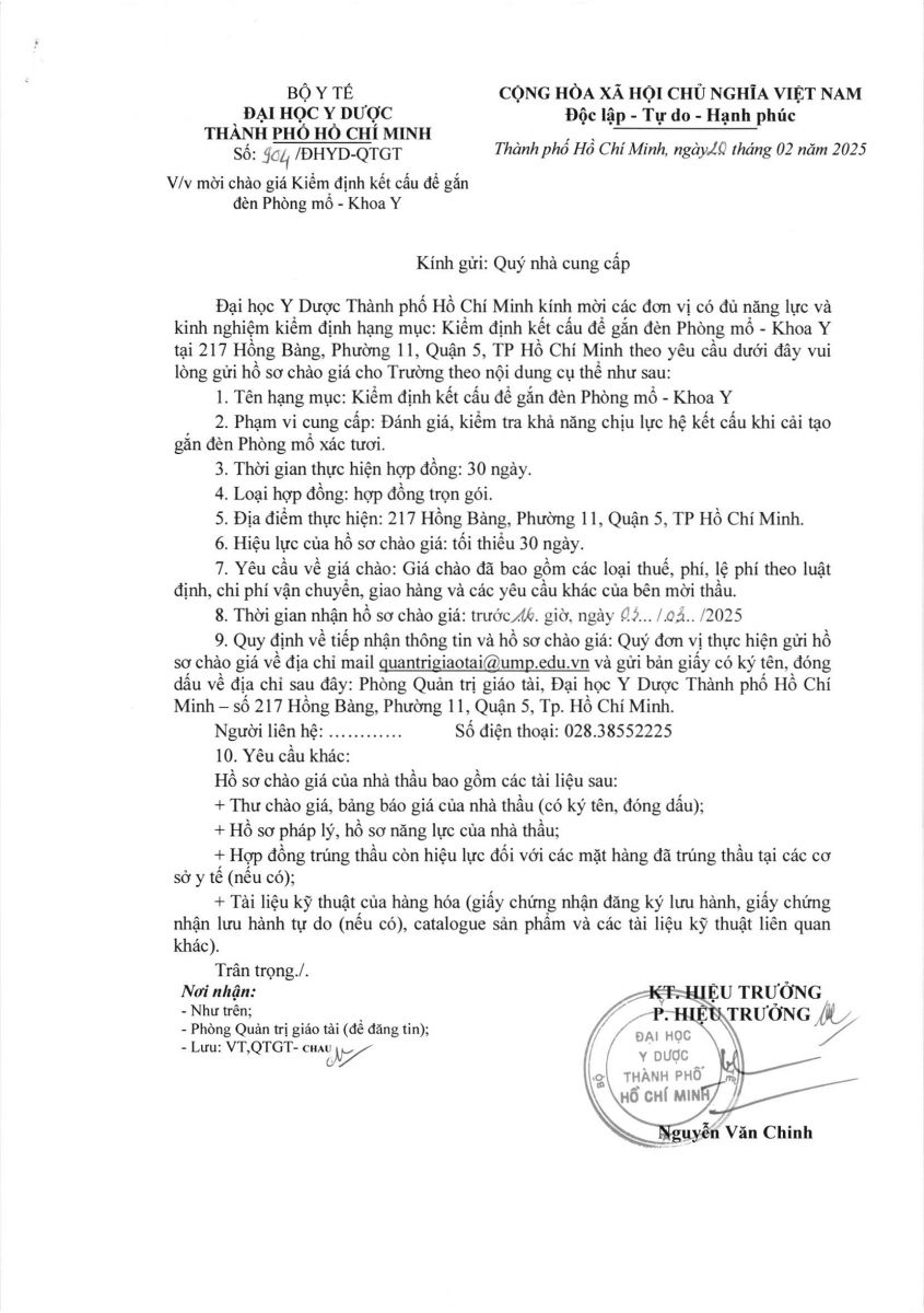 Thời gian nhận hồ sơ chào giá: từ ngày ra thông báo đến trước 16 giờ ngày 03/3/2025