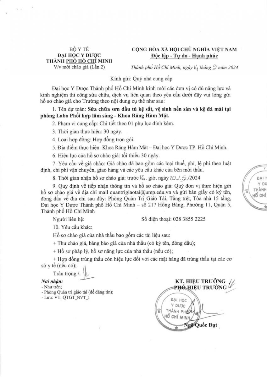 Thời gian nhận hồ sơ chào giá: từ ngày ra thông báo đến trước 16 giờ 00 ngày 20/5/2024