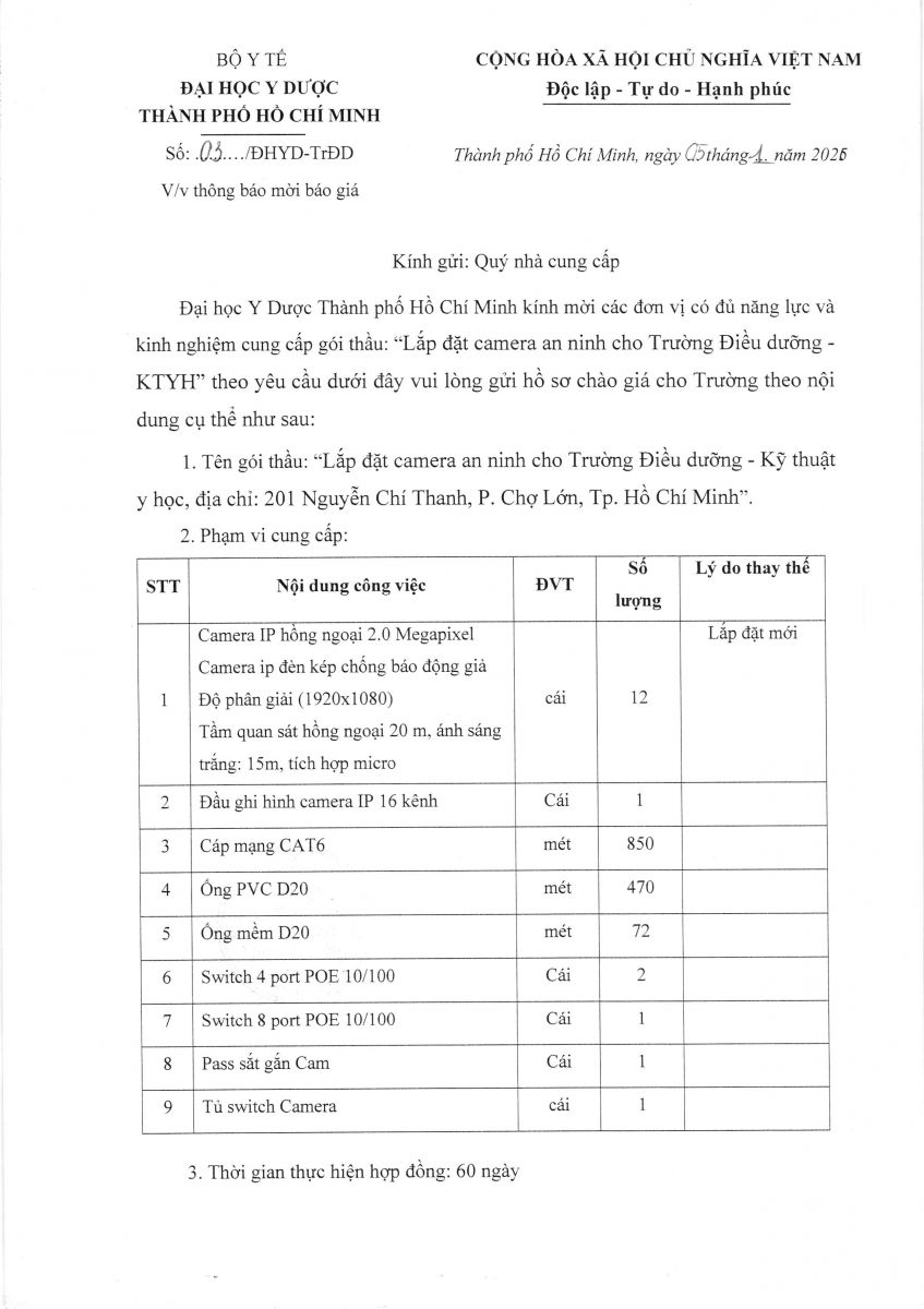 Thời gian nhận hồ sơ chào giá: từ ngày ra thông báo đến trước 16 giờ 00 ngày 12/01/2026