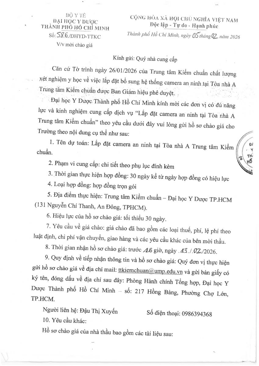 Thời gian nhận hồ sơ chào giá: từ ngày ra thông báo đến trước 16 giờ, ngày 13/02/2026