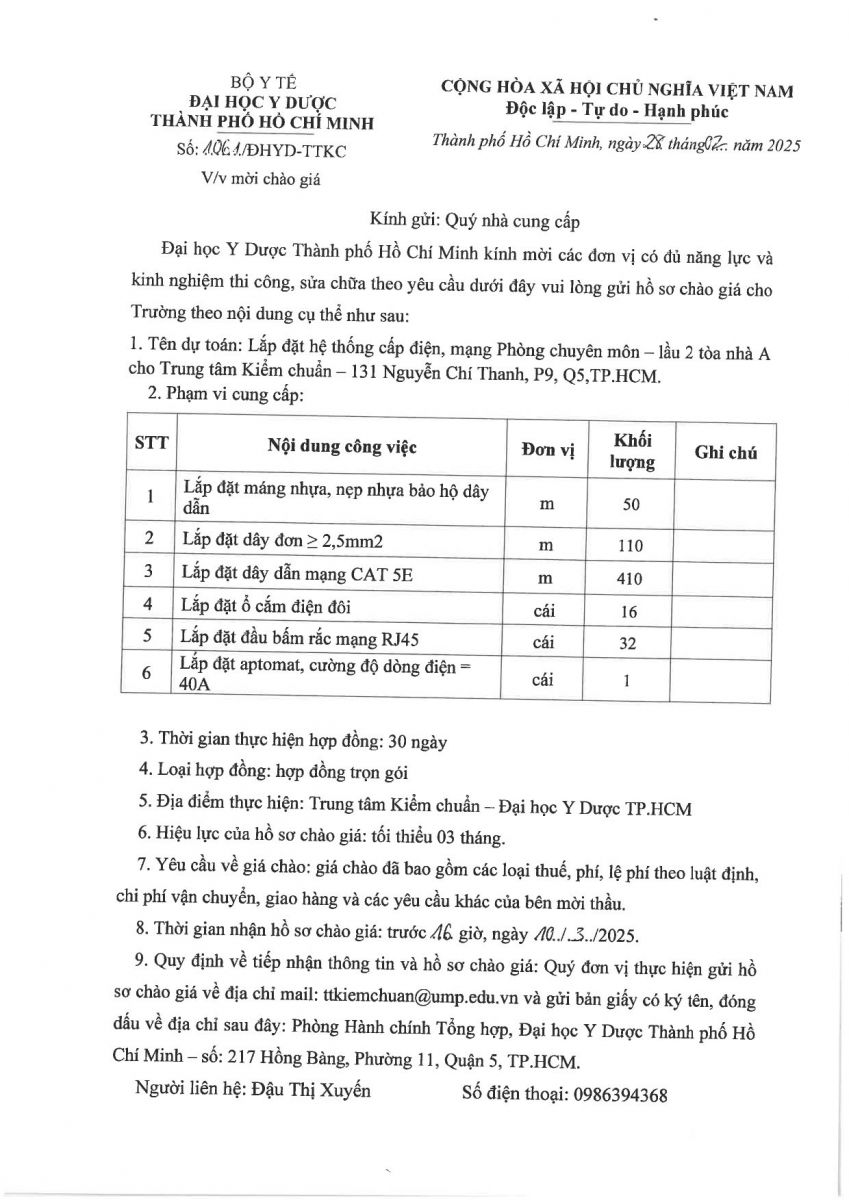 Thời gian nhận hồ sơ chào giá: từ ngày ra thông báo đến trước 16 giờ, ngày 10/3/2025