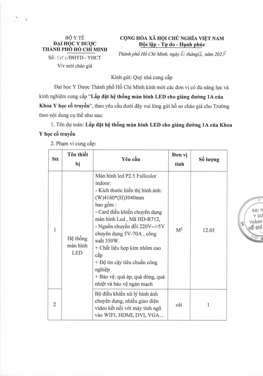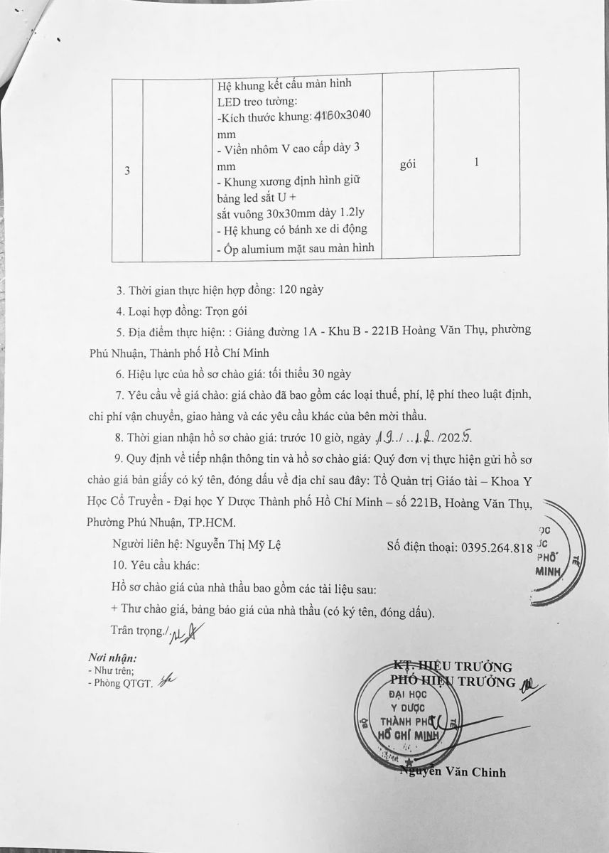 Thời gian nhận hồ sơ chào giá: từ ngày ra thông báo đến trước 10 giờ, ngày 19/12/2025